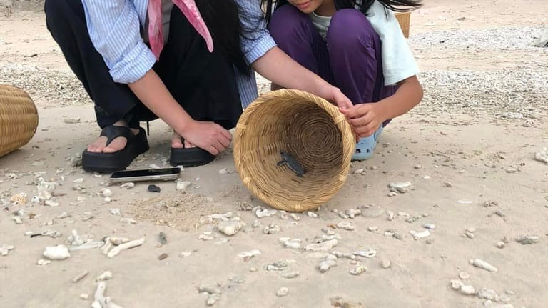 Releasing baby turtles to the sea