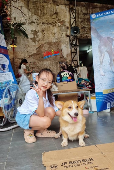Mi is Mun's sibling and currently studying grade fifth at Hoang Dieu Primary School, Ha Noi. She loves dancing and dances very well. She loves animals and joins Junior Help to help abandoned cats and dogs.